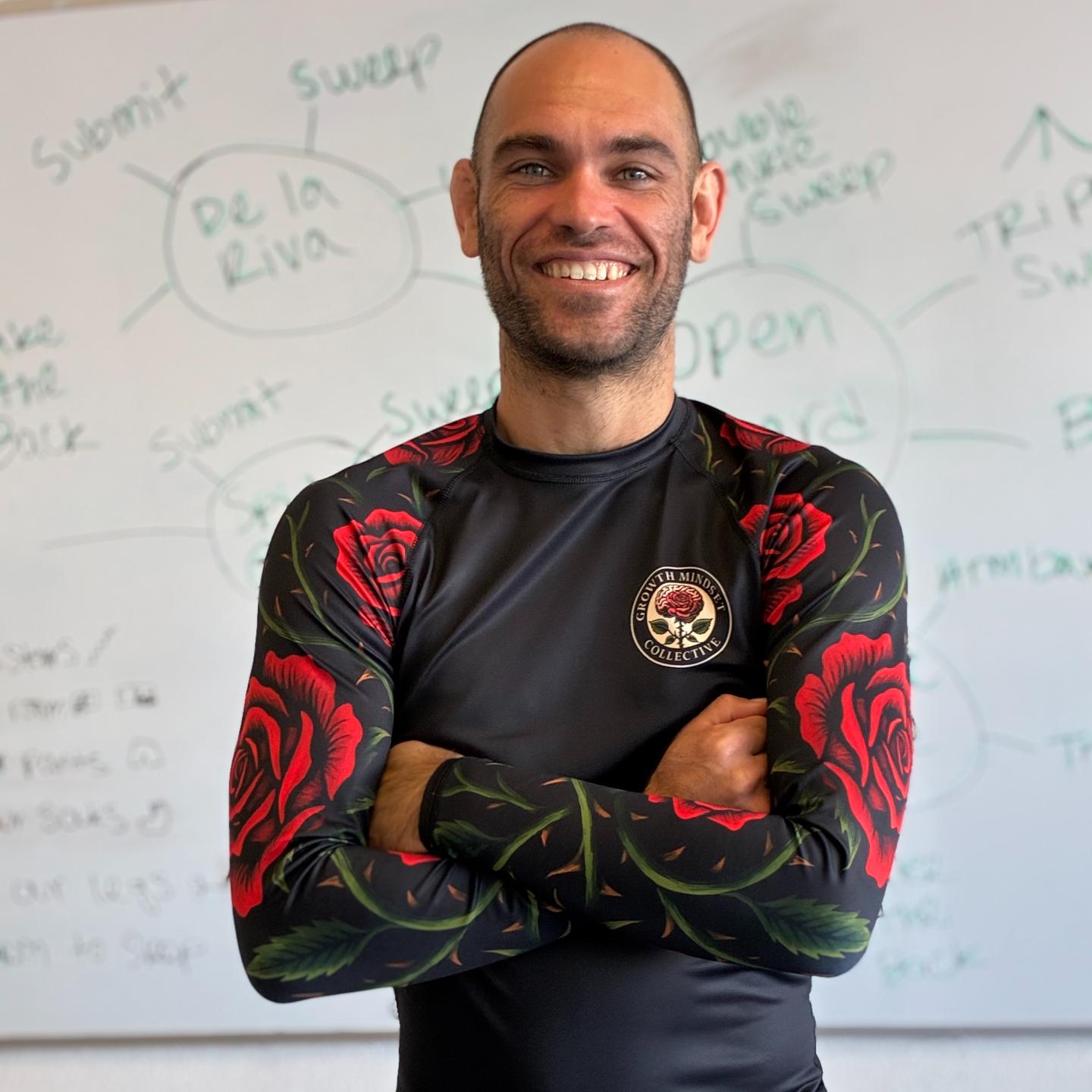 Bold, resilient, and crafted with purpose — the Rose Rashguard represents the balance of beauty and strength found on the mats and in life. Featuring striking red roses and thorned vines across a deep black canvas, this design embodies the heart of Growth Mindset Collective's philosophy: perseverance, discipline, and transformation through challenge.
